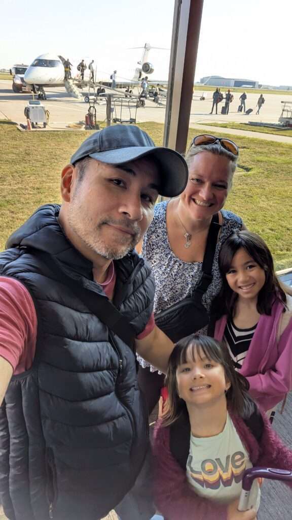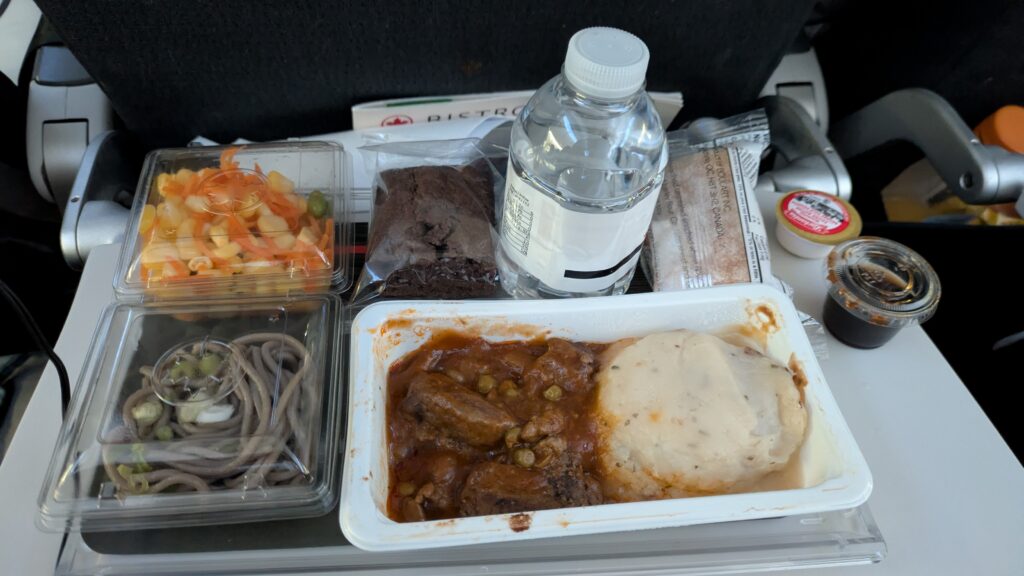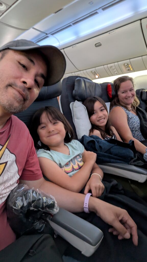 Woke up early and got packed up. Had some English muffins for breakfast. Then got a ride in our neighbour’s truck. Said bye and then waited for our flight. Then we got on our plane from Windsor to Toronto. It was only an 45 minutes which was pretty quick. Then we got off the plane and found lunch. Me and my sister split a poutine and a burger. My parents had “banh mis”. Then our flight was delayed. Then we got on the second flight that is 13.5 hours! We said bye to Canada and enjoyed the ride. 5 hours into our flight the plane crew started to hand out the dinner. I had the beef, mash potatoes, soba noodles, corn salad, a brownie and a bottle of water.