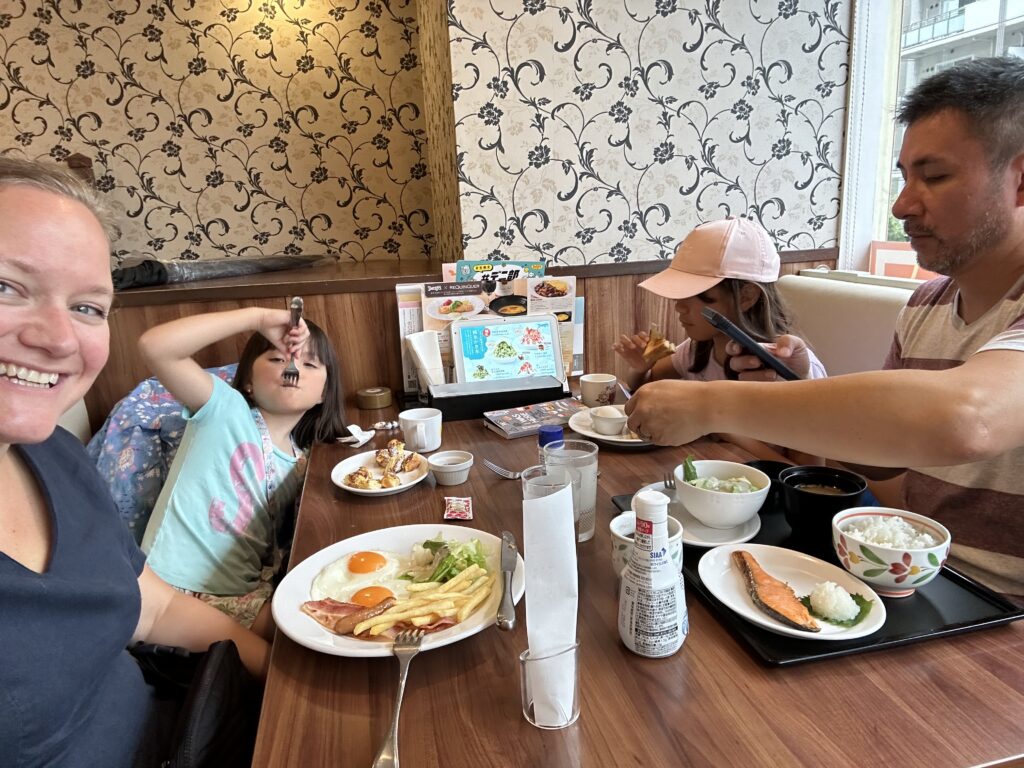 Woke up at 2 am because of the jetlag. Our dad was asleep so we watched some TV. Then went out across the bridge to Denny’s for breakfast. We also saw a piece of art called the golden flame, but we call it the golden poop. I didn’t want something big so I had a grilled cheese sandwich.